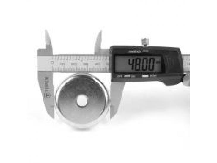 Шукаєте виріб для здійснення надійного прихованого кріплення? Неодимовий магніт кріпильний під потай діаметром 48 міліметрів, висотою 11,5 мм це чудове рішення таких потреб. Сила зчеплення даного магніту виняткова. Вона становить аж 60 кілограмів. Погодьтеся, для магнітика вагою всього 120 грамів це вражаюча міцність. Розміри отвору для здійснення потайної фіксації складають 8,5 мм, отвір під потай 16 мм. Виріб ефективно працює при температурі до 80 градусів, має захист від корозії, досить низький відсоток розмагнічування. Сталевий корпус, у який поміщений магніт, концентрує магнітне поле у центрі виробу, що дозволяє міцно утримувати предмети. А ще він надає додаткового захисту від пошкоджень, тріщин, розколів.