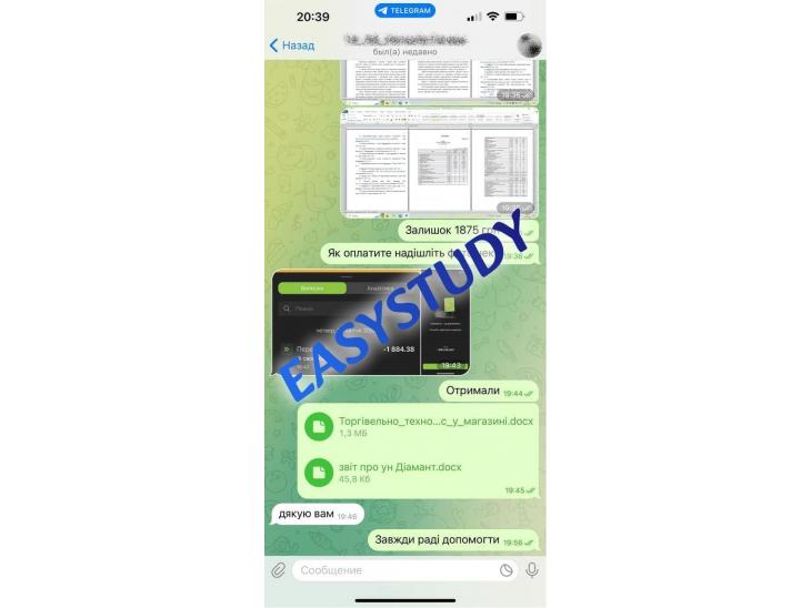 Звертаємо Вашу увагу, що EasyStudy Company не продає жодних наукових праць або документів про освіту! Надаємо послуги виключно з пошуку, обробки та структурування інформації, згідно вимог замовника. Зібрані матеріали не являються науковою роботою, але можуть бути використані в якості прикладу для самостійного написання.