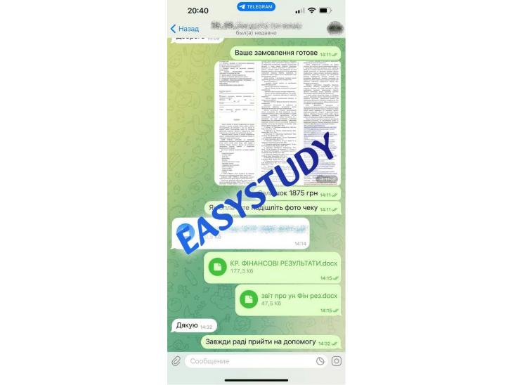 Звертаємо Вашу увагу, що EasyStudy Company не продає жодних наукових праць або документів про освіту! Надаємо послуги виключно з пошуку, обробки та структурування інформації, згідно вимог замовника. Зібрані матеріали не являються науковою роботою, але можуть бути використані в якості прикладу для самостійного написання.